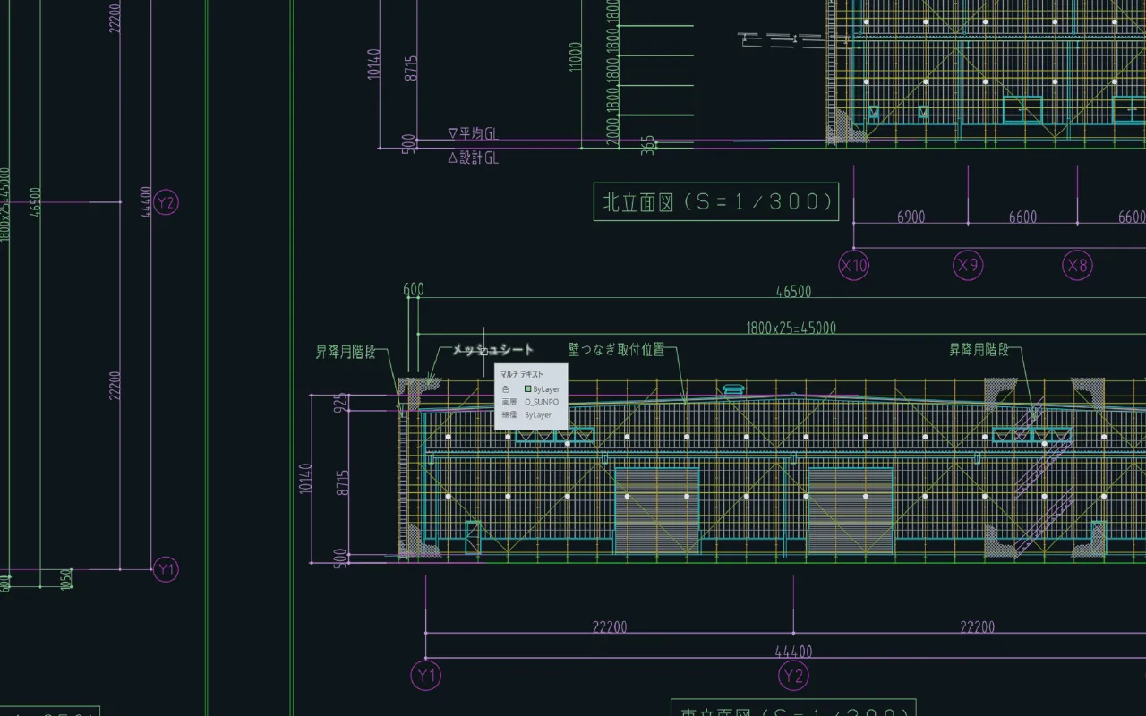 強度計算も含め、安全性・経済性・施工性を考慮した仮設計画図面をご提供致します。労働基準監督署の足場届けに必要な図面も製作致しております。